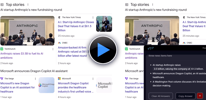 See how the VIP extension effortlessly scans a news page and distills the most important details into three clear and concise bullet points. This tool helps you quickly absorb key insights without having to read through the entire article, saving time and ensuring you stay informed at a glance.